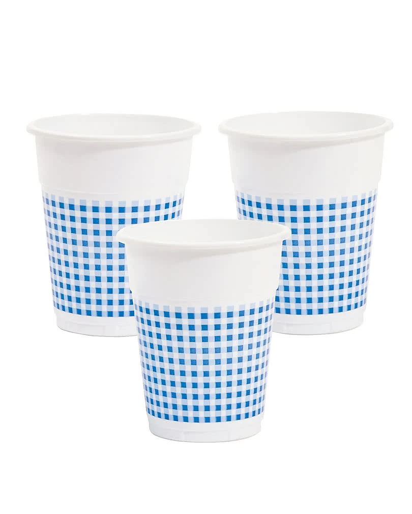 Die weiß/blauen Kunststoffbecher werden im 25er Pack geliefert und können jeweils mit ca. 350ml Bier, Cola, Saft oder Wasser gefüllt werden. Auch als Cocktailbehälter können die Trinkbecher zum Einsatz kommen. Zu einem klassischen Oktoberfest-Ambiente gehören natürlich auch die Oktoberfest Tischdecke Deluxe und Oktoberfest Pappteller 8 St..