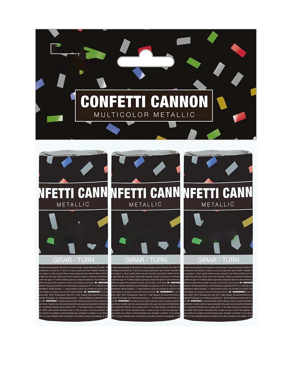 3 Stück Multi Color Konfettikanone 10,5cm