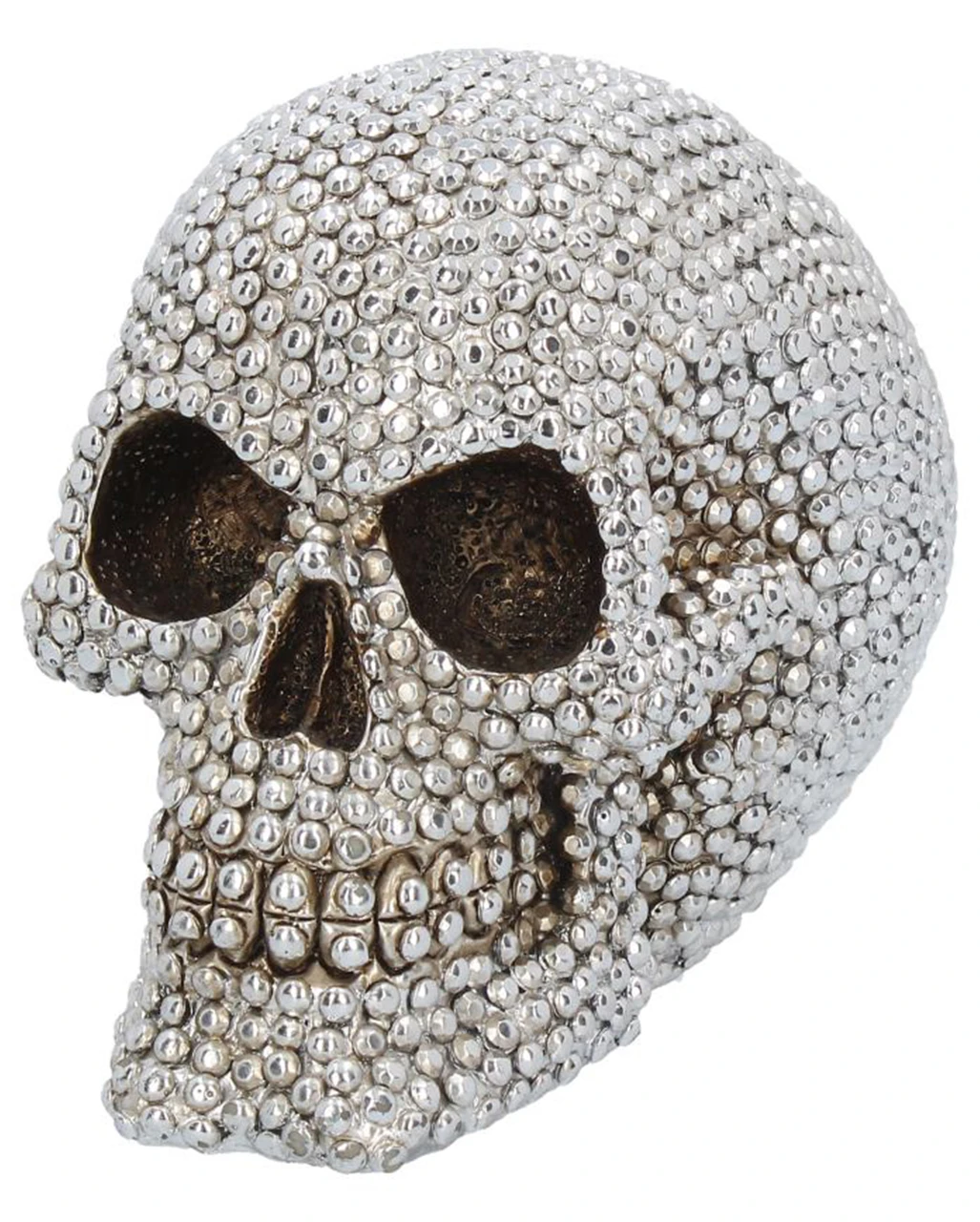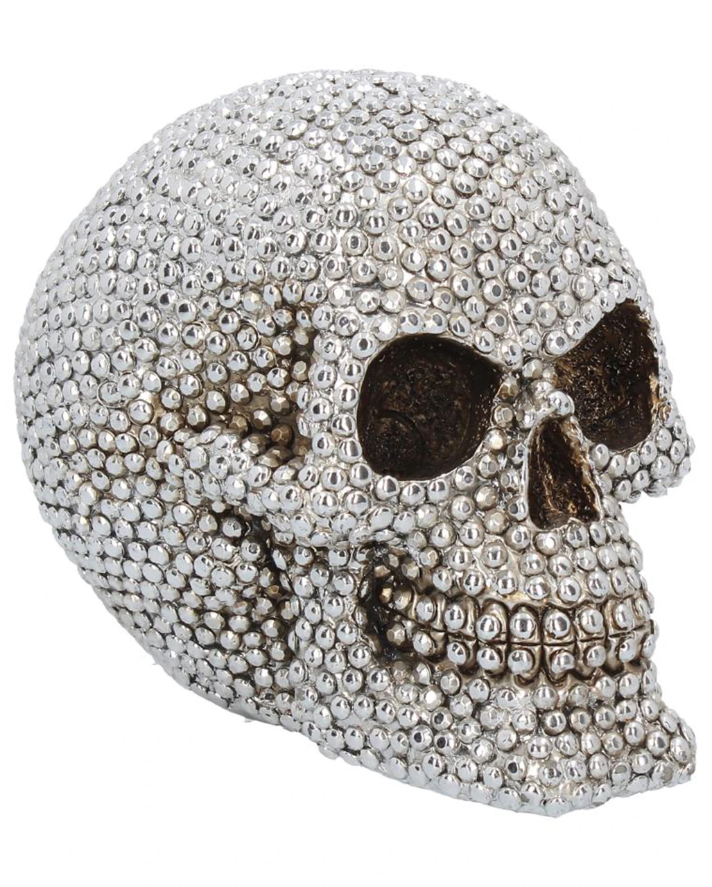 Silberglänzender Totenschädel „Priceless Grin“ mit Diamantoptik