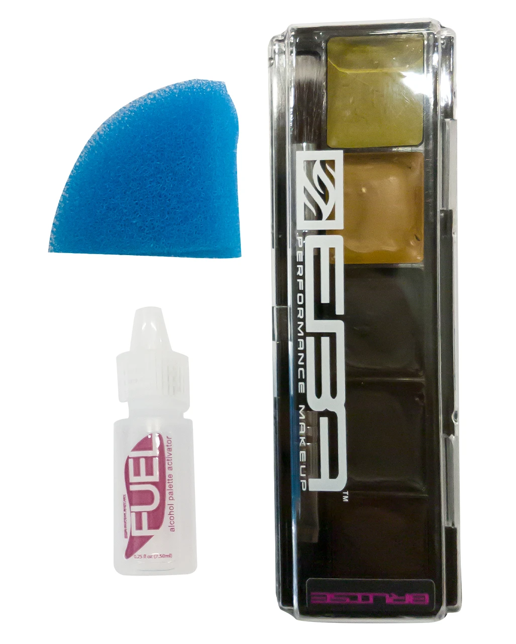 Das von Hollywood Profies hergestellte Bluterguss SFX Wasserfeste Make-up Palette besteht aus 5 Make-up Farben, Aktivator Flüssigkeit, Pinsel und Schwämmchen. Zur Anwendung: Bitte die Haut vorher mit Isopropanol Alkohol oder Wasser und Seife reinigen. Dann eine kleine Menge bzw. wenige Tropfen Aktivator Flüssigkeit auf die vorher trockenen Make-up Farbe(n) geben und etwa 1 Minute einwirken lassen. Jetzt mit Pinsel oder Schwämmchen das aktivierte Make-up auf die gewünschte Stelle auftragen. Du kannst den Pinsel, zum Verfeinern des Effekts, immer wieder in Isopropanol Alkohol (91-99%) eintauchen. Das Make-up trocknet im Gegensatz zur herkömmlichen Fettschminke schnell an und ist nach dem Trocknen wasserfest und färbt nicht ab.