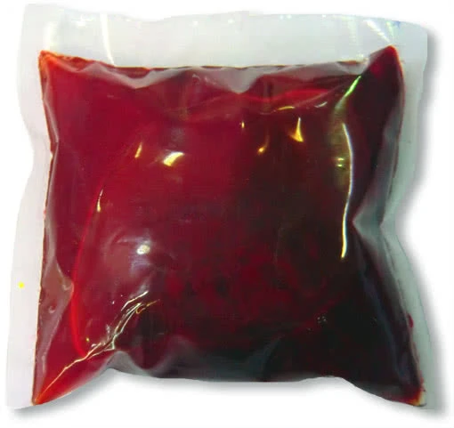 Mit Kunstblut gefülltes Folienkissen als Spezial Make-up Effekt mit für Theater und Film