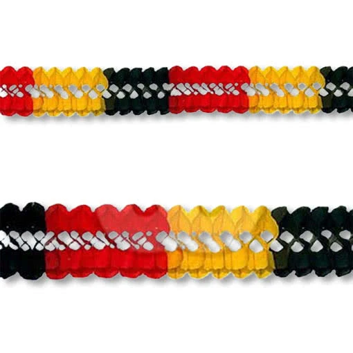 Mit der Deutschland Girlande hast du als wirklicher Fan unserer Nationalmannschaft schon mal den richtigen Schritt gemacht. Dieser tolle Dekorations Artikel hat eine Länge von 4m und einen Durchmesser von ca. 15 x 15cm. Die Deutschland Girlande ist damit einfach perfekt. Du kannst dir noch mehr Deutschland Fan Artikel besorgen, wie zum Beispiel die Deutschland Fanperücke und den Cowboy Deutschlandhut .