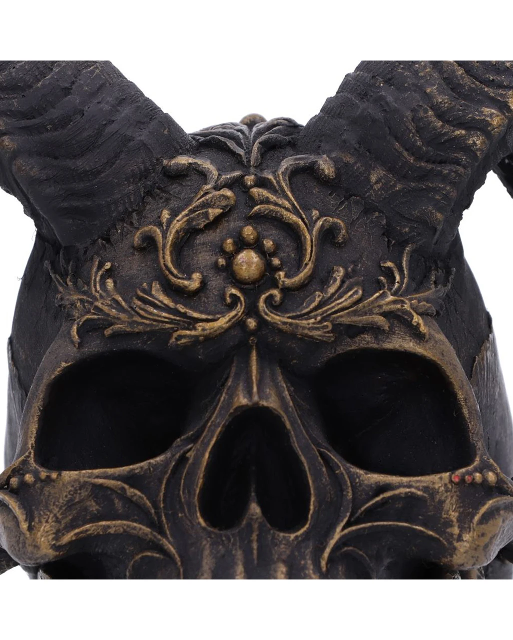 Der Diabolus Totenkopf ist aus Kunststein gefertigt und liebevoll von Hand bemalt. Für Sammler von Totenköpfen und okkulter Wohnaccessoires ist unser teuflischer Skull genau das Richtige. Sichere dir den Totenschädel mit Widderhörnern gleich gemeinsam mit unserem Rabe auf Totenkopf Schädel.