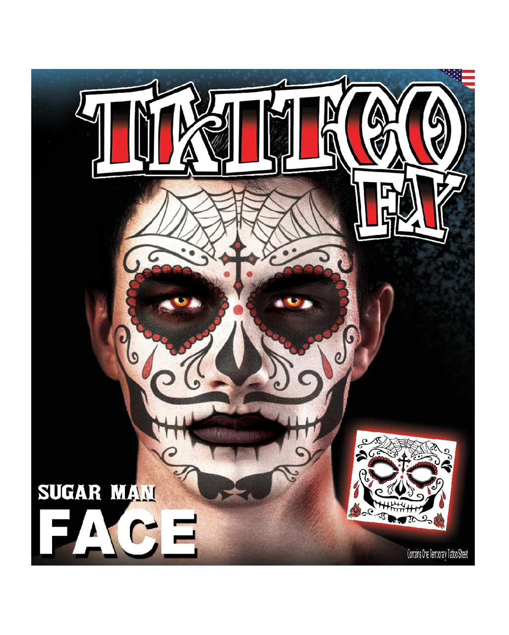 Lieferumfang: 1x Face Tattoo Sugar Skull männlich