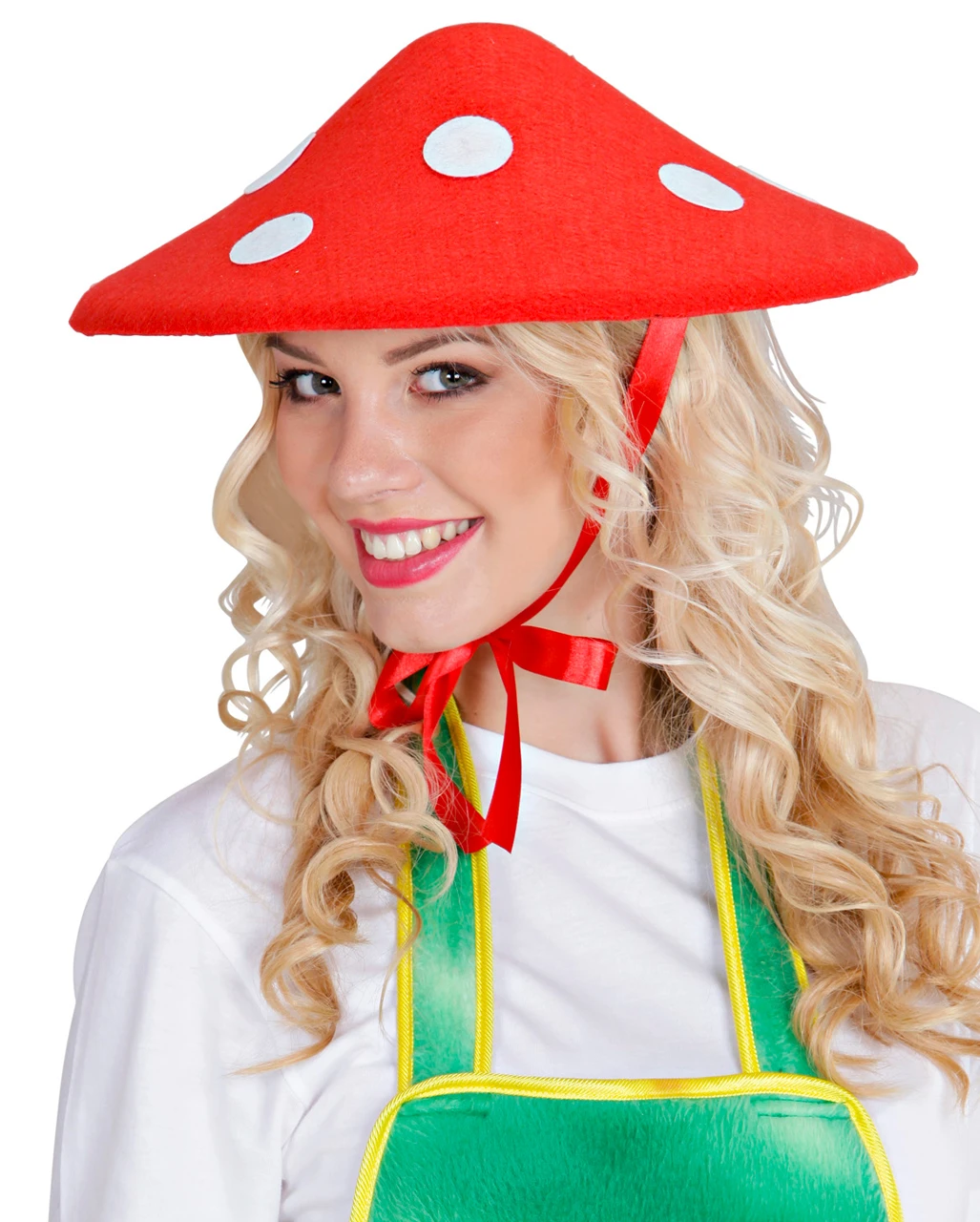 Unser Fliegenpilz Accessoire ist ein Filzhut aus weichem, leuchtend rotem Stoff. Da Fliegenpilze giftige Pilze sind, wurde unsere Mütze auch mit weißen Punkten verziert. Sei also bitte vorsichtig! Damit der Hut auf deinem Kopf bequem und stabil sitzen kann, wird die Pilz Filzmütze am Kopf mit roten Schleifen befestigt. Passend zu deinem Fliegenpilz Outfit empfehlen wir für deine Familie noch ein Papa Schlumpf Kleinkinderkostüm, ein Schlumpf Kleinkinder Kostüm oder das Sexy Schlumpfine Kostüm.