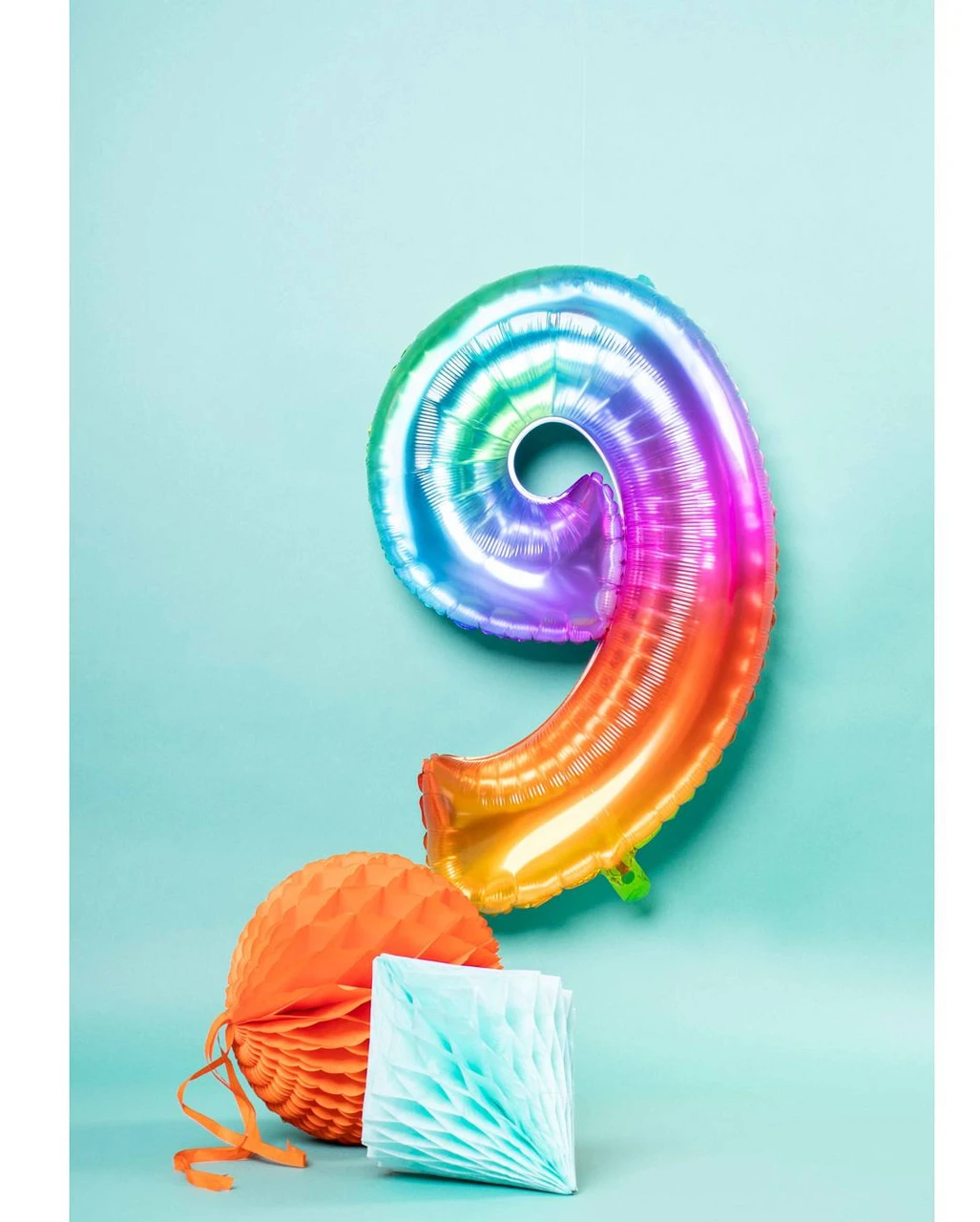 Lieferumfang: 1 x Folienballon Zahl 9 Regenbogen
