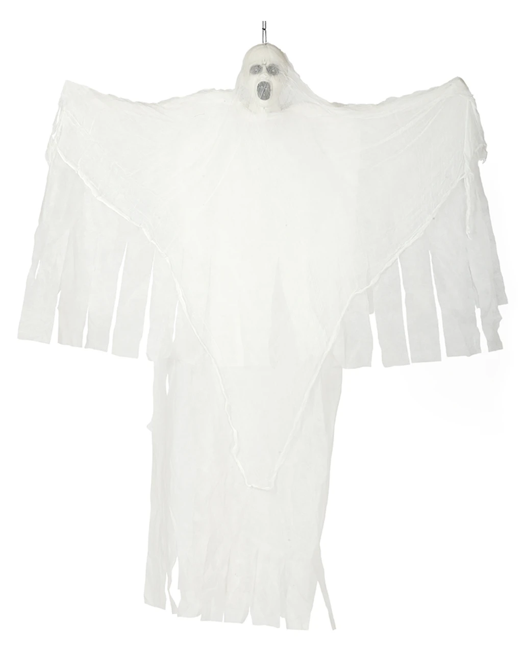 Die Geist Hängefigur mit leuchtenden Augen 180cm ist ein weißes Deko-Gespenst für Halloween. Der Licht-Effekt durch LED Augen macht die Gespenster Deko besonders eindrucksvoll und gruselig. Die Halloween Hängefigur ist einfach zu befestigen und sorgt für maximalen Grusel-Effekt. Auch für größere Räumlichkeiten ist das 1,8 m große Halloween Deko Gespenst ideal. Entdecke auch den fürchterlichen Fetzen Reaper mit bewegl. Flügeln