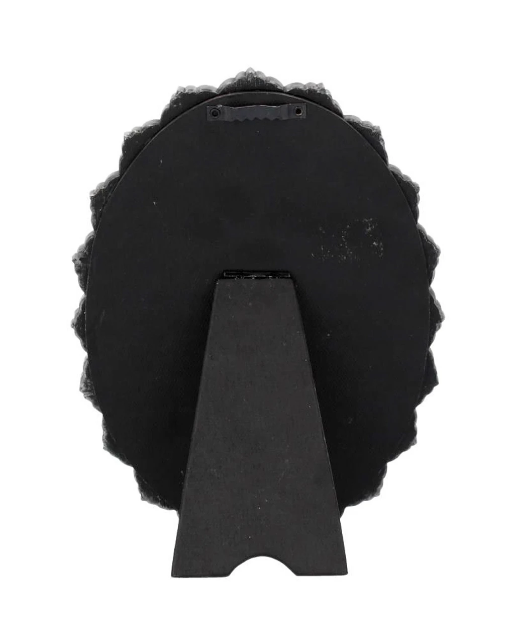 Diese wunderschöne Ganzjahres Gothic Deko macht kahle Wände zum atemberaubenden Blickfang. Unser Gothic Skelett Gentleman Day of the Dead Wandbild ist ein hübsches Camee Skelett Bild, welches du an die Wand hängen oder aufstellen kannst. Das Bild hat eine ovale Form und zeigt das erhabene Relief eines skelettierten Herrn mit Zylinder & roter Rose. Das filigrane Ornamentmuster und die hochwertige Verarbeitung machen diese Kamee Stil Gothic Deko zum perfekten Geschenk!