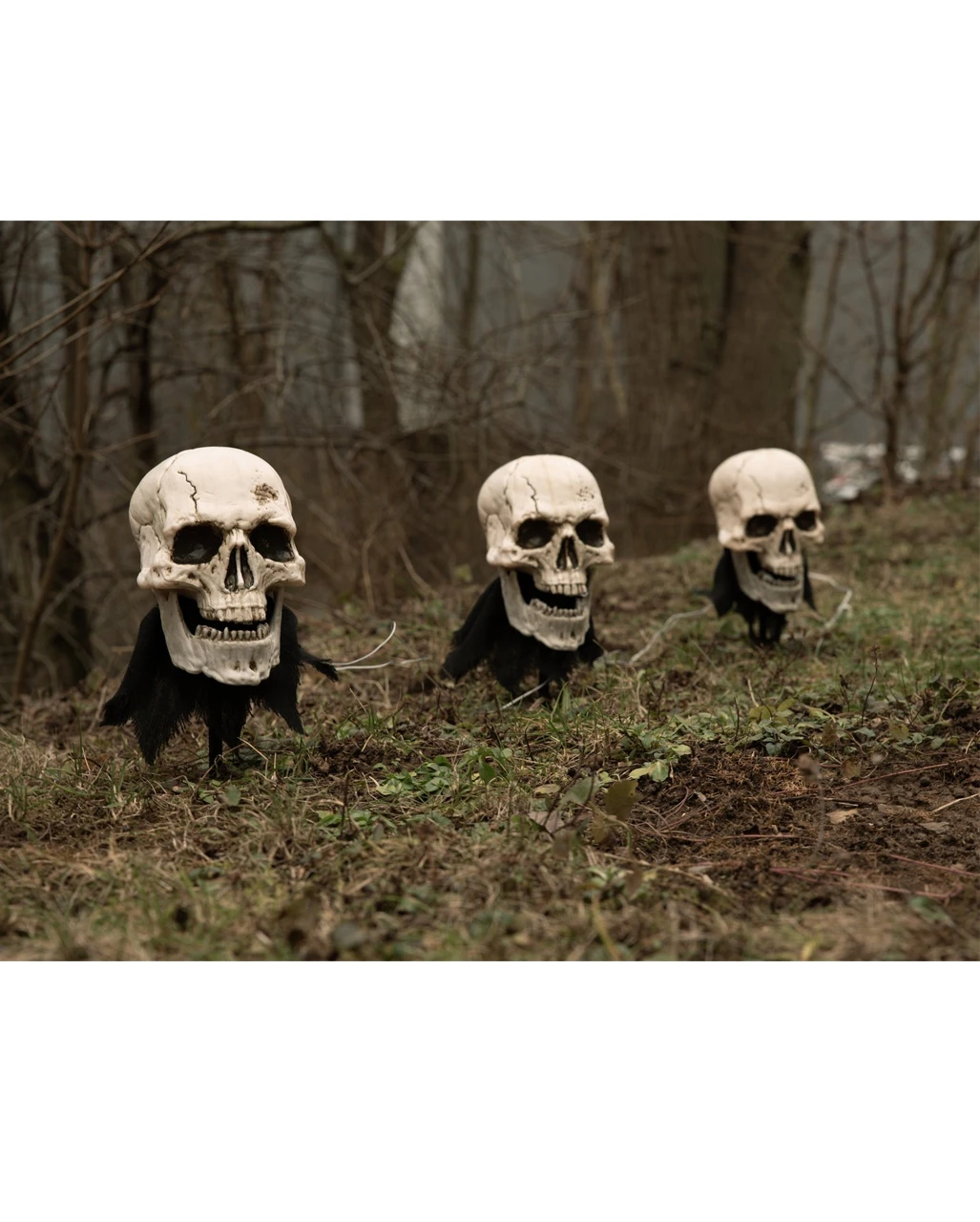 Lieferumfang: 1 x Halloween Totenschädel mit Erdspieß 3er-Set