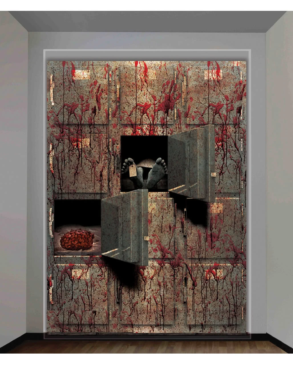 Lieferumfang: 1x Halloween Wandfolie Leichenschauhaus