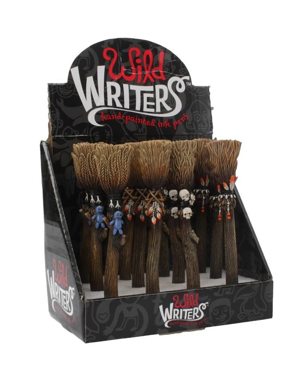 Der Hexenbesen Kugelschreiber Deluxe besteht aus Polyresin (Kunststein) und ist mit viel Liebe zum Detail verarbeitet & handbemalt. Der Voodoo Kuli ist in vier Designs erhältlich, geziert mit Totenköpfen, Voodoo Puppe & Federn. Die vier verschiedenen Modelle sind nicht wählbar, bestelle am besten mehrere gleichzeitig, dann ist die Chance der Abwechslung größer. Achtung, der Kunststein ist stabil, kann aber brechen.