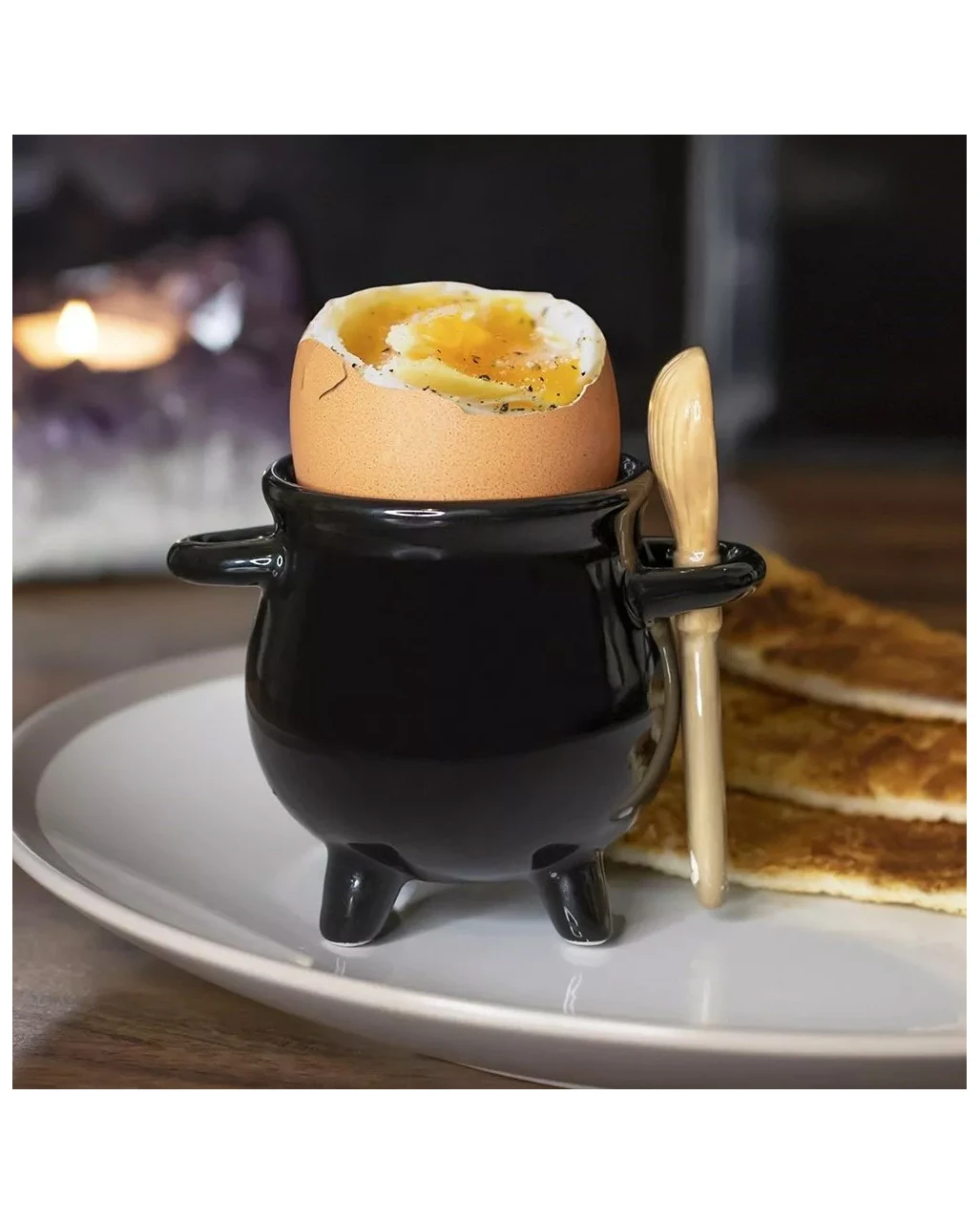 Hexenkessel mit Löffel als Eierbecher