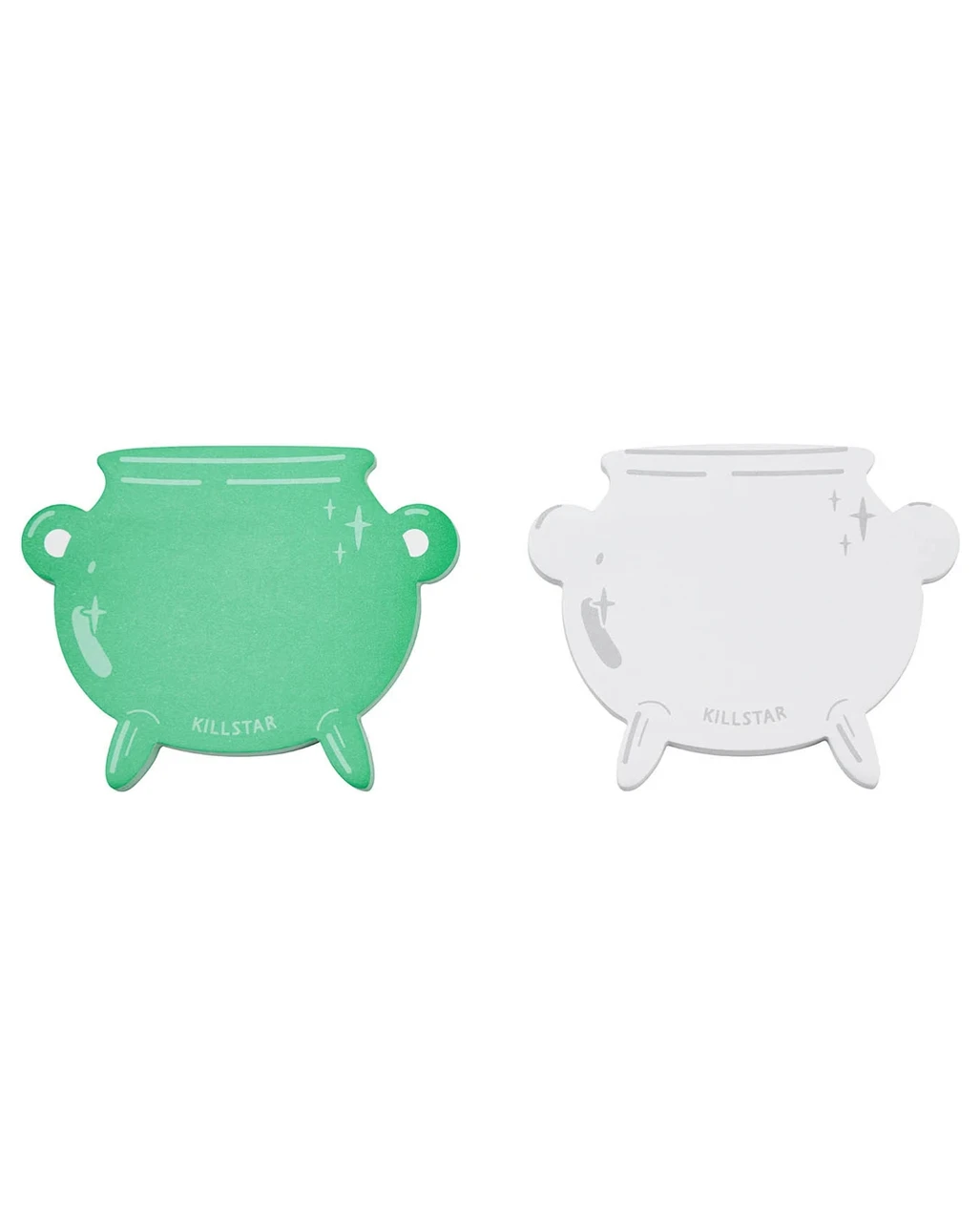 Die KILLSTAR Hexenkessel Haftnotiz kommt in zwei unterschiedlichen Ausführungen: Einmal in Türkisgrün und einmal in Weiß. Die Hexenkessel Memo Zettel sind etwa 8 x 10 cm groß und eignen sich hervorragend als Halloween Mitbringsel. Bestell den KILLSTAR Hexenbesen Stift am besten gleich dazu!