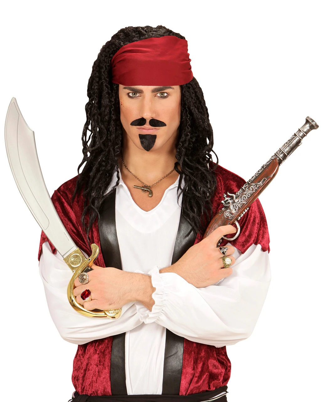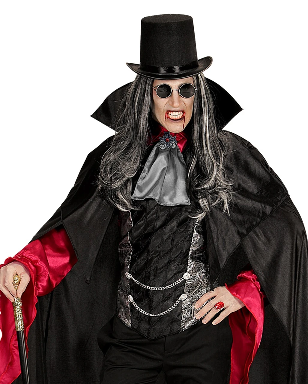 Unser flexibel einsetzbarer Kostümschmuck darf in keinem Kostümfundus fehlen und besteht aus Metall und Acryl und lässt sich in der Größe verstellen. Weitere passende Kostüm Accessoires wären zum Beispiel das Gothic Halskette mit Keltenkreuz Anhänger Rot und die Gothic Ohrringe Kreuz.