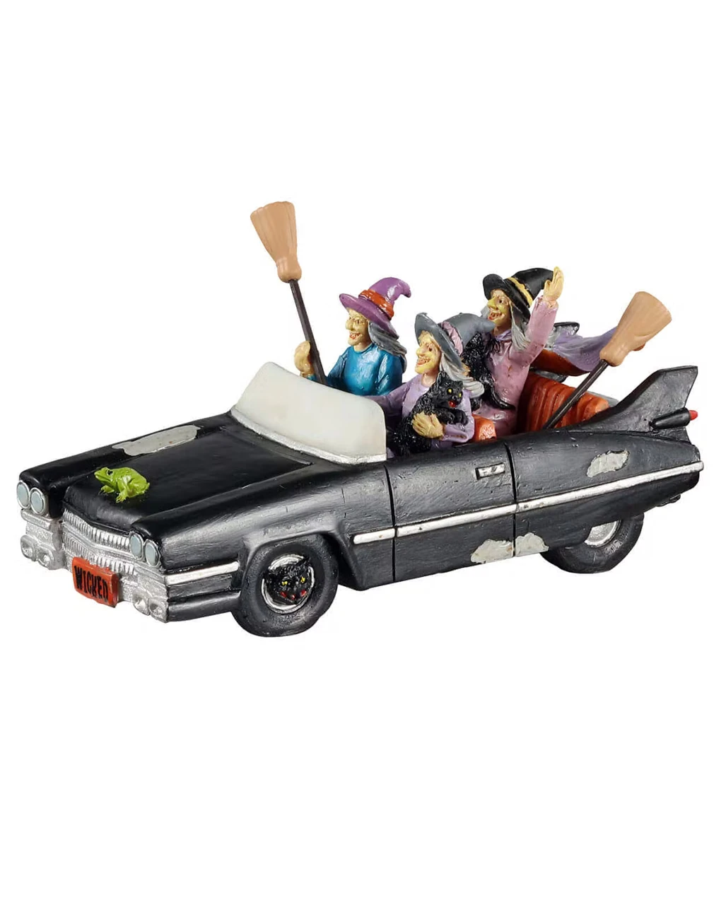 - Schwarzes Cabrio mit drei Hexen als Fahrzeuginsassen