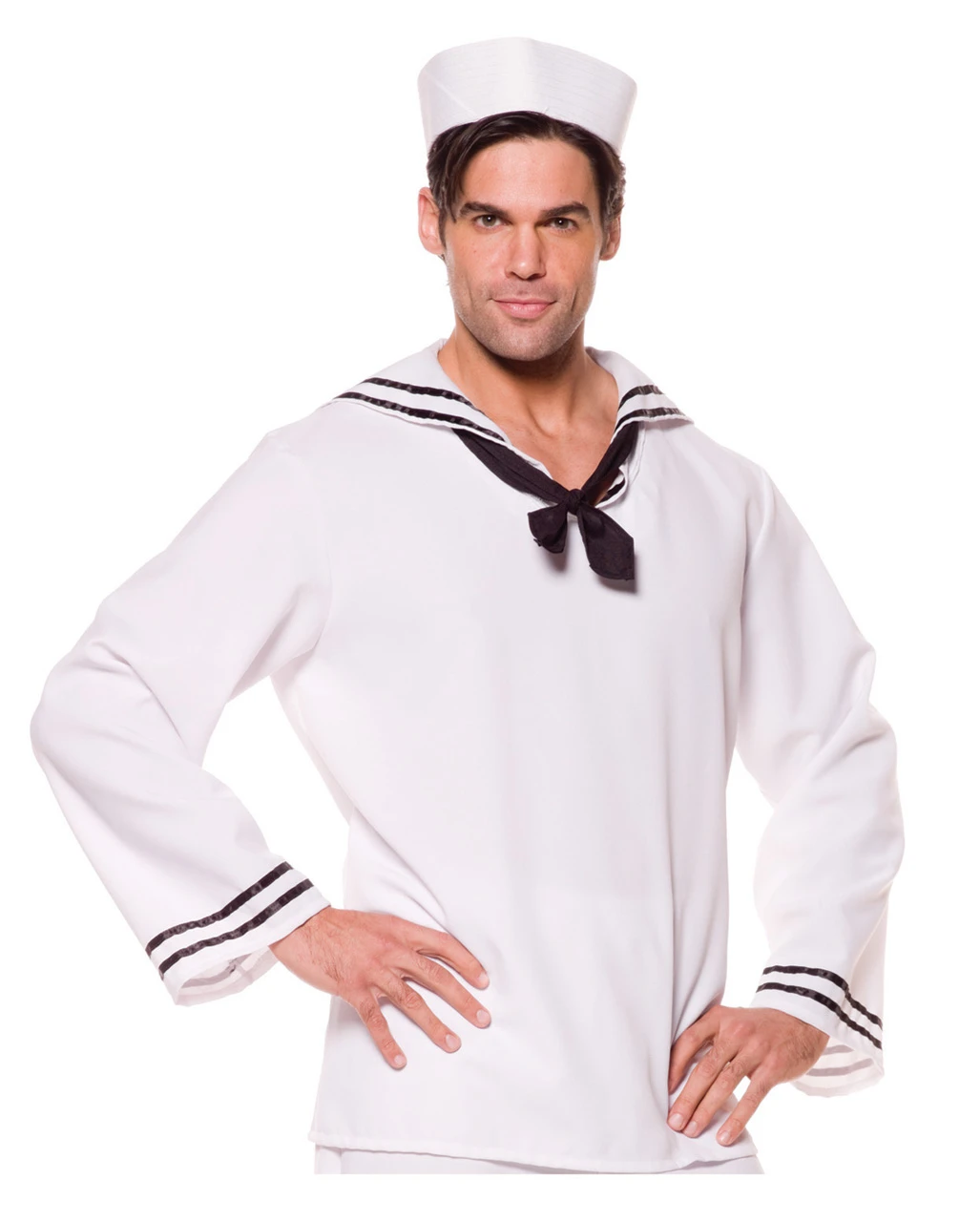 Dein Matrosen Hemd mit Hut ist ein Schiffsmann Hemd für Karneval und Halloween. An den Ärmeln und am Latz sorgen schmale schwarze Streifen für einen schönen Akzent. Der Matrosenknoten an der Brust ist schwarz gehalten. Dein Matrosen Hemd wird von einem weißen Matrosenhut abgerundet. Du bekommst das Matrosen Kostüm-Set in One Size(50/52), XL(54/56) und XXL(58/60). Entdecke auch unser Matrosen Kostüm mit Mütze Premium und das Sexy Sailor Kostüm