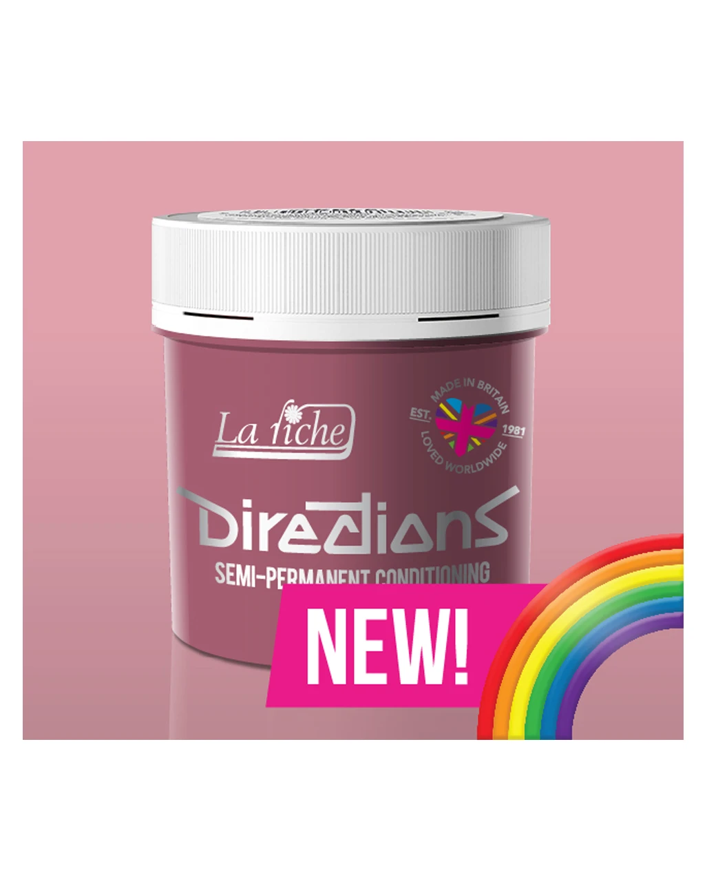 Die Pastel Rose Directions Haartönung ist eine hübsche Farbnuance und für schonend aufgehelltes Haar geeignet. Je nach Einwirkzeit lässt sich mit dem Pastellrosa Farbton herumspielen. Die Pastel Rose Directions auf gewaschenes, handtuchtrockenes Haar auftragen und danach mit einem Kamm durchkämmen, damit ein gleichmäßiges Farbergebnis garantiert werden kann. Nach einer Einwirkzeit von ca. 15-30 Minuten sorgfältig ausspülen und mit dem Directions Directions Farbschutz Conditioner Groß versiegeln. Directions Haartönungen können super untereinander gemischt werden, somit können neue Farbtöne und Schattierungen kreiert werden.