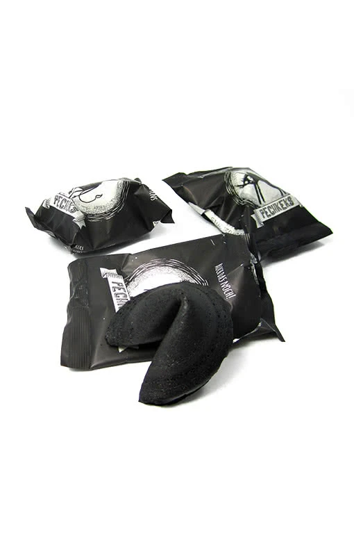 Glückskekse sind allseits bekannt, können aber mit ihren Alltagsweisheiten auch schnell langweilig werden. Wenn du genug von dieser Schönmalerei hast und deinen Freunden – oder besser noch deinen Feinden – etwas Schlechtes tun willst, haben wir für dich den Pechkeks mit Spruchzettel im Sortiment. Schwarze Kekse, schwarzer Humor: Ideal für Pechvögel und Glückspilze, Powerfrauen und Überflieger, Heulsusen und Weicheier, eiserne Ladies und harte Typen