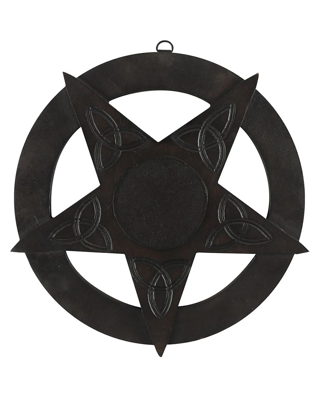 Das Pentagramm Wandbild aus Holz ist eine eindrucksvolle Wanddekoration für deine Gruft. Das Pentagramm gehört zu den geheimnisvollsten Symbolen in der Geschichte der Menschheit. Für die Griechen bedeutet es Gesundheit, die Christen sahen es als ein Zeichen Satans und für die Kelten würde dieses Keltische Pentagramm Wandbild wohl eher ein Schutz vor Dämonen bedeuten. Was dieses wunderbare Gothic Wandbild mit dem okkultem Keltenmuster für dich bedeutet, entscheidest du selbst. In jedem Fall ergänzt das Pentagramm deinen alternativen Einrichtungsstil auf mystische Weise.