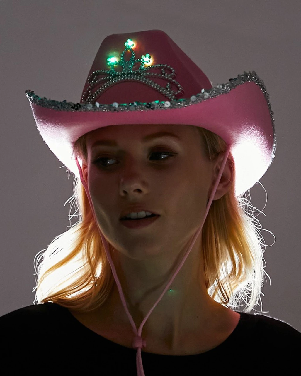 Lieferumfang: 1 x Pinker Cowgirl Hut mit Leuchteffekt