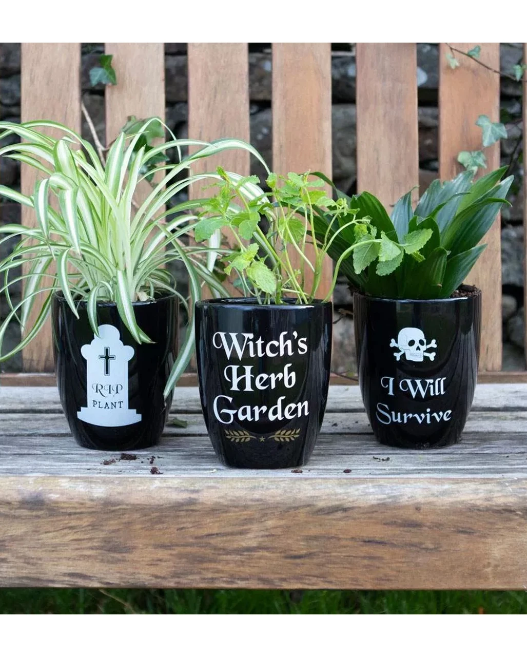 Dein brauner Daumen sorgt dafür, dass Zimmerpflanzen regelmäßig verdursten? Aus der Blumenerde ragen nur noch karge Zweige? Dann ist der R.I.P. Gothic Blumentopf genau das Richtige für dich. Das R.I.P. Motiv deutet auf witzige Weise an, dass bei dir kein Pflänzchen überlebt. Auch als Geschenk für Menschen mit schwarzem Humor ist der Gothic Blumentopf perfekt geeignet.
