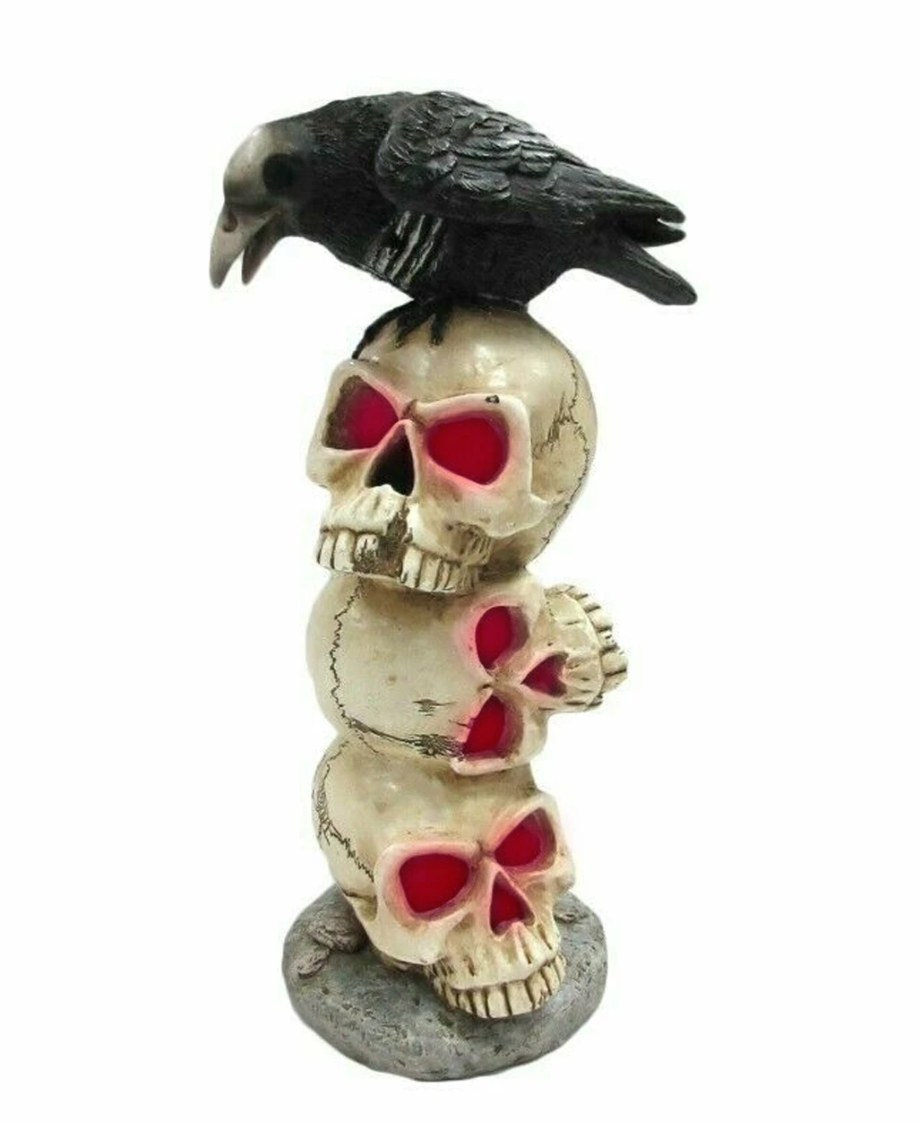 Lieferumfang: 1 x Rabe auf Totenkopf Turm mit LED Licht 29cm