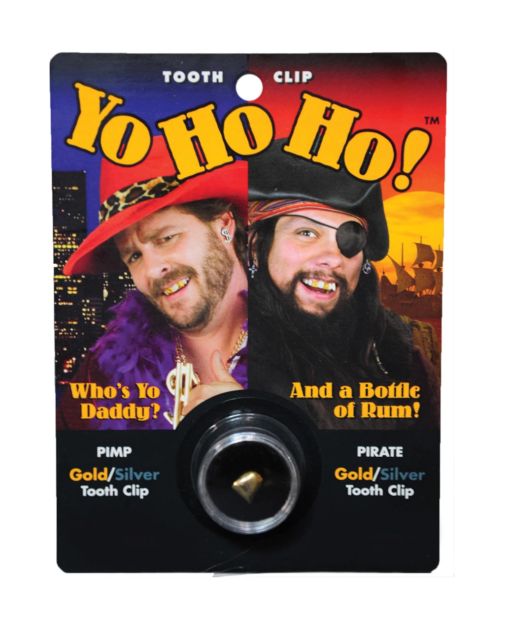 Mit dem goldglänzenden Aufsteckzahn ohne metallisch schmeckendem Geschmack bseitzt du ein prima Kostümzubehör um deinem Charakter das richtige Aussehen zu verleihen. Mit dem Clip On Zahn in Gold wirst du zum saloppen Hip Hop Star, Rapper, Pimp oder Pirat. Verwirre deine Kollegen und Familie mit einem aufpolierten Goldzahn.