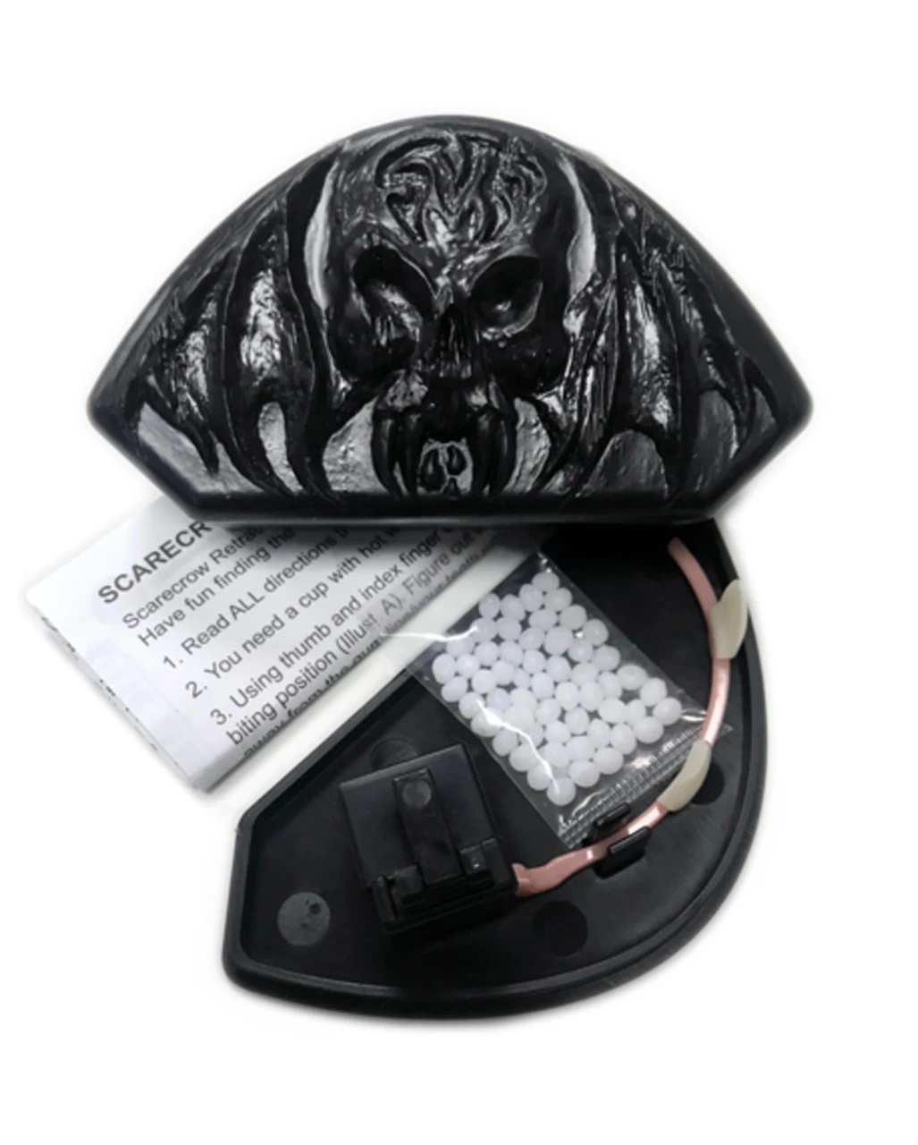 Die Scarecrow Einziehbare Vampirzähne sind ein riesiger Sprung vorwärts in der Kunst der Vampirzähne und der mechanischen Effekte. Voll funktionsfähige einziehbare Fangzähne, die nach unten aktiviert werden, um den verblüffendsten Reißzahneffekt zu erzielen, der je für Halloween, Cosplay, Film oder Live-Auftritte verfügbar war! Einfach zu benutzen, bequem zu tragen, natürlich zu sprechen, zu aktivieren oder zu verstecken, wann immer Sie wollen.