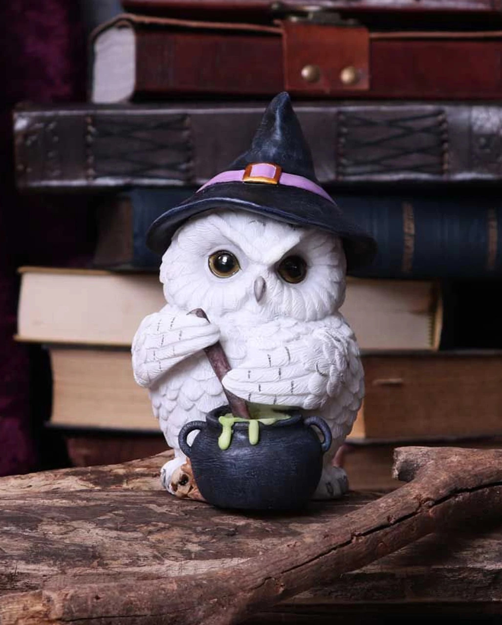 - Schneeeule mit schwarzem Hexenhut & Hexenkessel