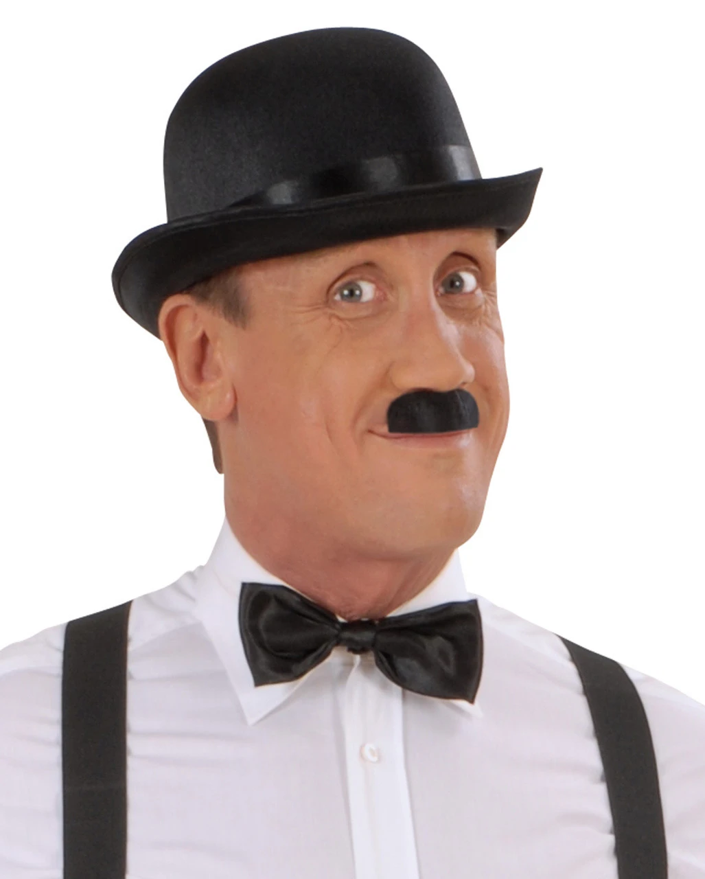 Ob täuschend echte Chaplin-Impro, oder die Grundlage für einen stylischen Vagabunden – der Schnurrbart Charlie wird Dich nicht enttäuschen. Sieh Dir dazu auch unseren Spazierstock Charlie oder Schwarze Satin Melone Charlie an!