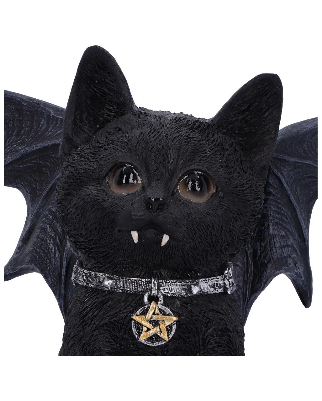 Gegossen wurde die schwarze Katze Vampuss aus hochwertigem Polyresin. Danach wurde sie sorgfältig handbemalt. Mit ihren großen schwarzen Augen und den zauberhaften Fledermaus Flügeln ist diese Figur wahrscheinlich die süßeste Vampir-Katze, die man je gesehen hat, und die perfekte Ergänzung für die Sammlung eines jeden Katzen-Fans. Viele weitere okkulte Katzenfiguren wie die Mystic Ouija Katzenfigur 26cm findet ihr hier im Shop.