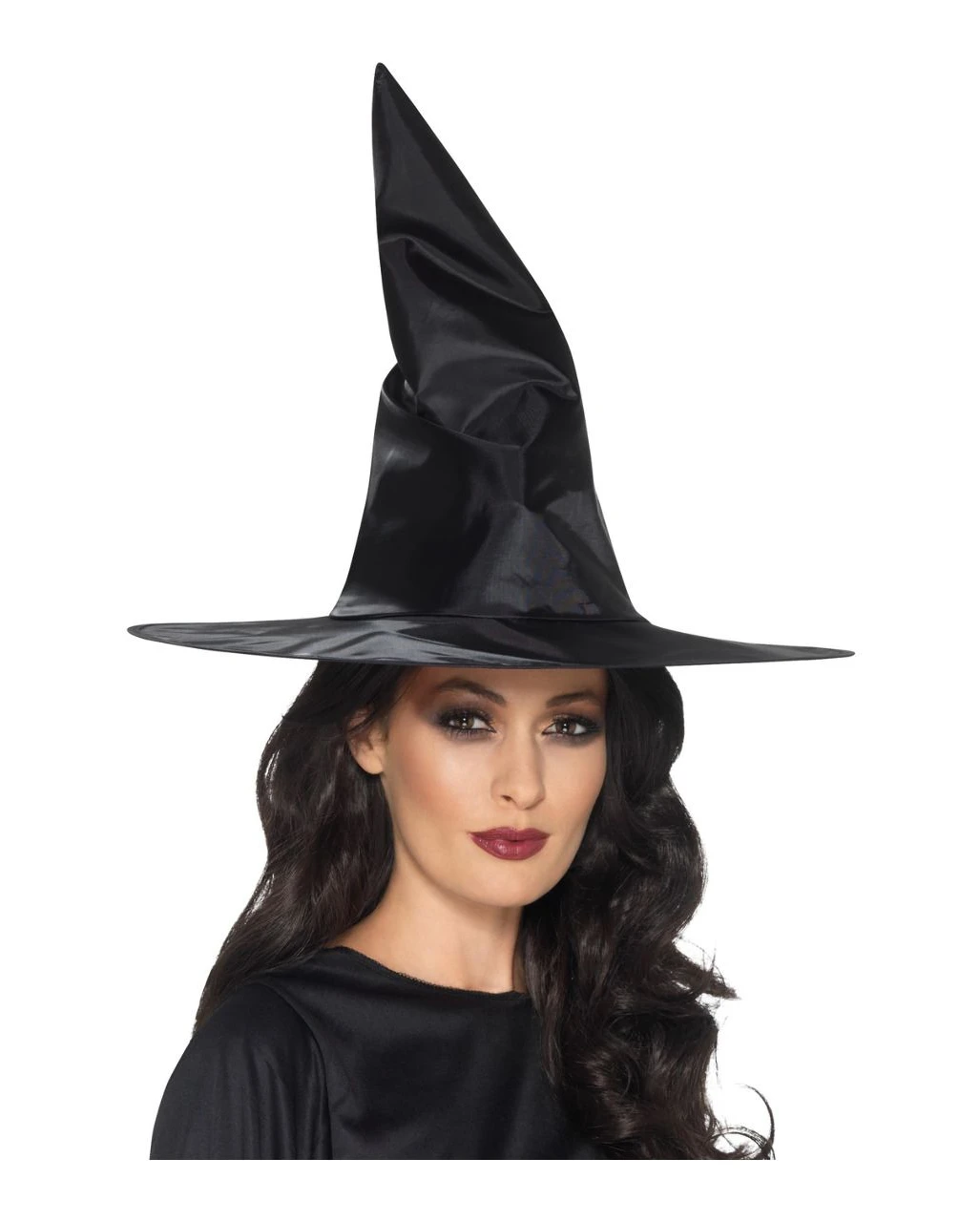 Klassischer Hexenhut aus schwarzem Satin als Klassiker für Halloween und Walpurgisnacht