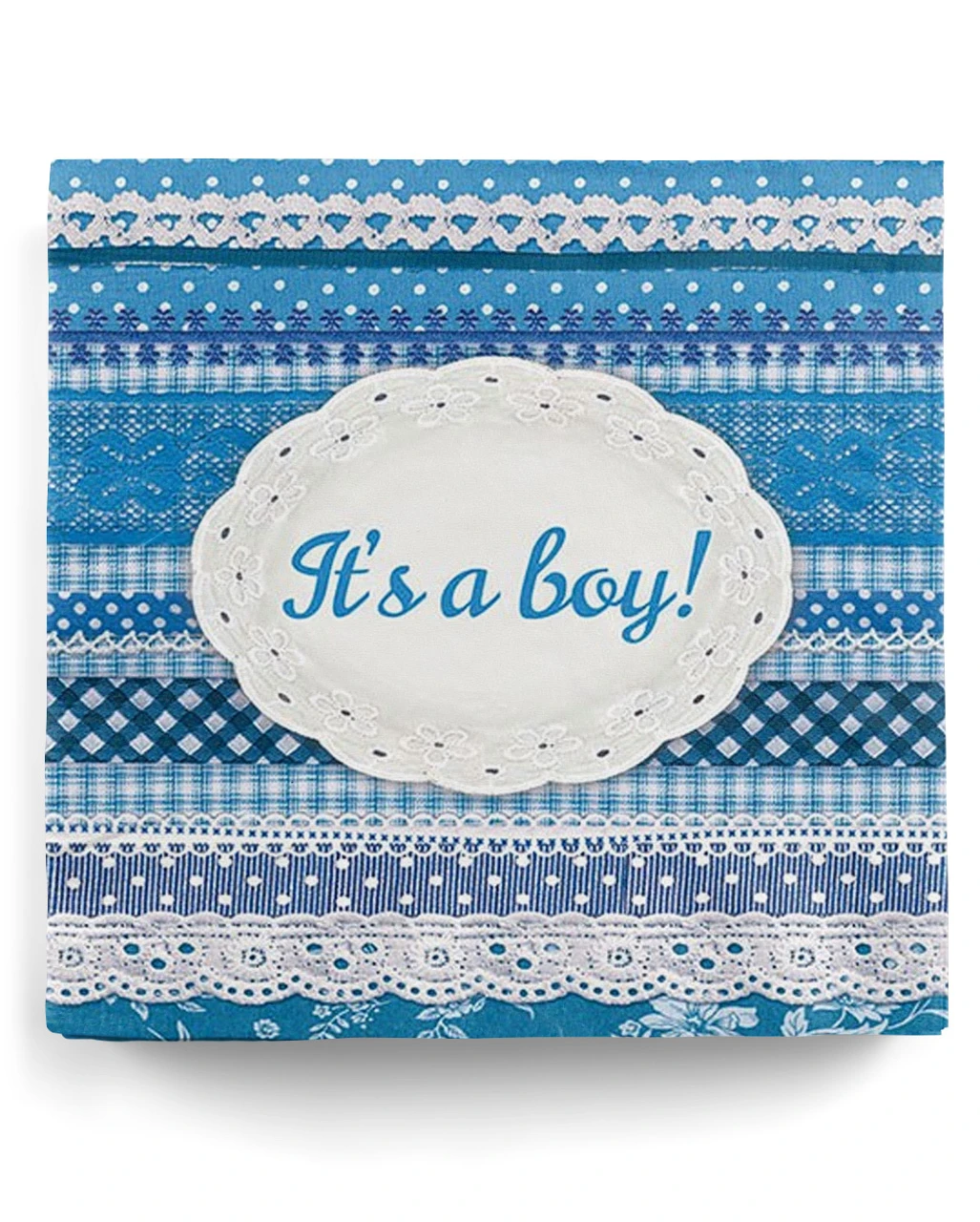 Die It’s a Boy Servietten sind ein liebenswerter Hingucker auf jedem Baby shower & Gender Reveal Party. Damit wirst Du Deiner Freundin bei ihrer Baby Belly Party eine riesen Freude machen und auch bei den anderen Baby Party Gästen für Begeisterung sorgen.