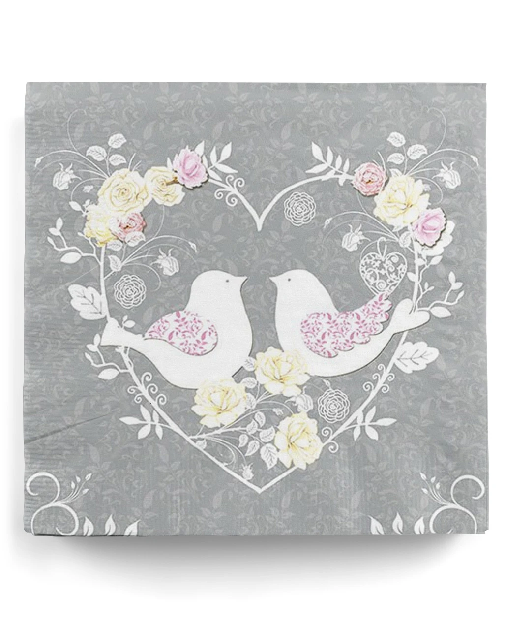 Papier-Servietten mit verliebten Tauben im Herz für Hochzeiten