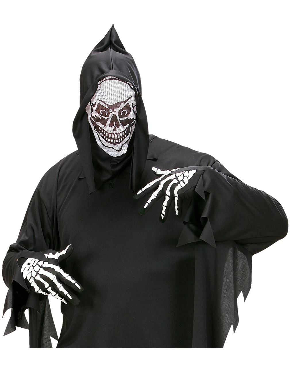 Die anschmiegsamen, schwarzen Stoffhandschuhe besitzen auf der Oberseite den weißen Aufdruck einer Skeletthand und dürfen in keinem Kostümfundus fehlen. Zu den Skelett Handschuhen passende Horror Masken und Kostüme findest du in unserem Sortiment.