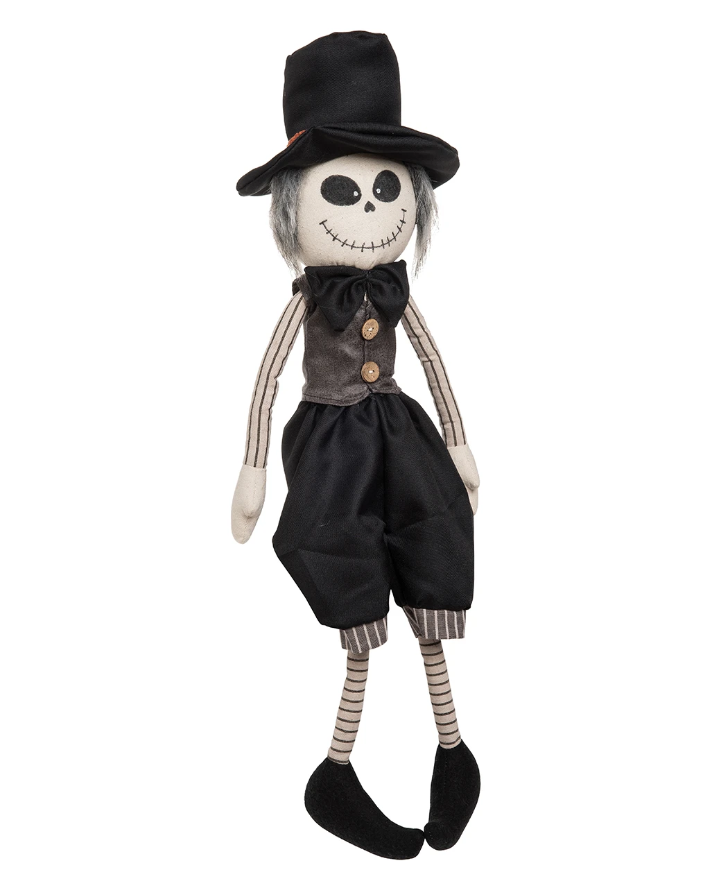 Holt euch den Skelett Mann Plüsch Kantenhocker also schnell für eure perfekte Halloween Deko oder als fantastischen Geschenkartikel für andere Gothic & Halloween Fans. Die Plüsch Figur ist ca. 66 cm hoch und zeigt ein Knochengerippe mit breit grinsendem Totenkopf. Dass unser Skelett Sinn für Mode hat, sieht man sofort. Die liebenswürdige Vintage Figur trägt schwarze Knickerbocker-Hosen, einen Hut und geringelte Strumpfhosen. Passend dazu holt ihr euch am besten die Skelett Frau Plüsch Kantenhocker 66cm.