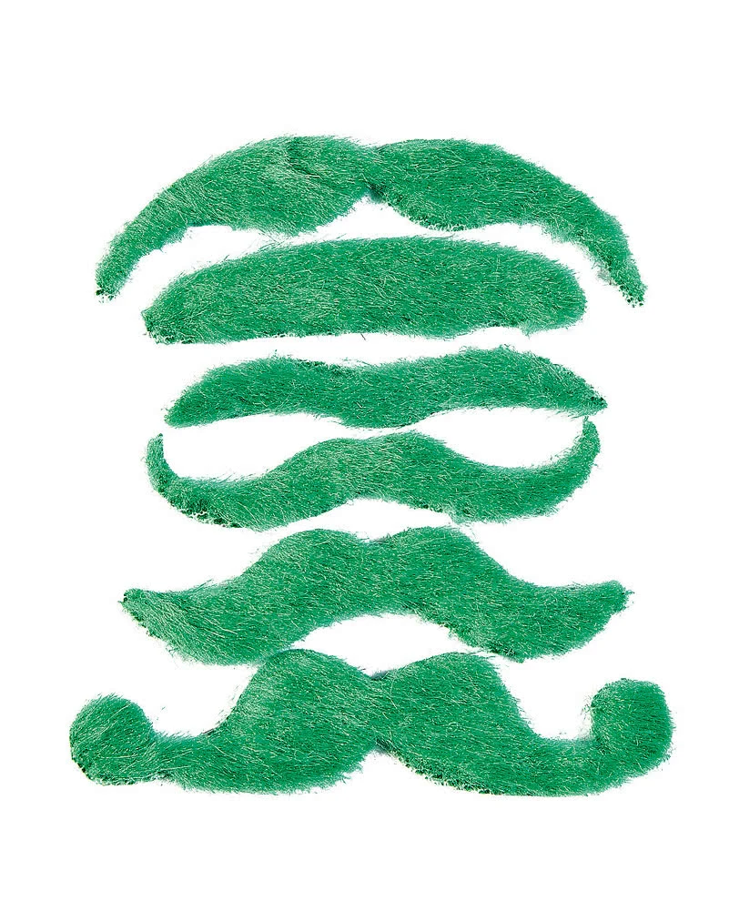Die sechs St. Patrick’s Day Bärte bestehen aus grüngefärbten Kunsthaar und verfügen über eine selbstklebende Rückseite. Man wählt einen Bart aus, zieht ihn von der Klebefläche ab, um ihn dann anschließend auf die gewünschten Stelle, zum Beispiel auf der Oberlippe, zu kleben. In jedem dieser Sets stehen sechs verschiedene Oberlippenbärte zur Auswahl. Ergänze etwa das Leprechaun Kostüm mit einem passenden Oberlippenbart. Du kannst einen der St. Patrick’s Day Bärte auch als schmuckes Accessoire zum St. Patricks Day Anzug auflegen.