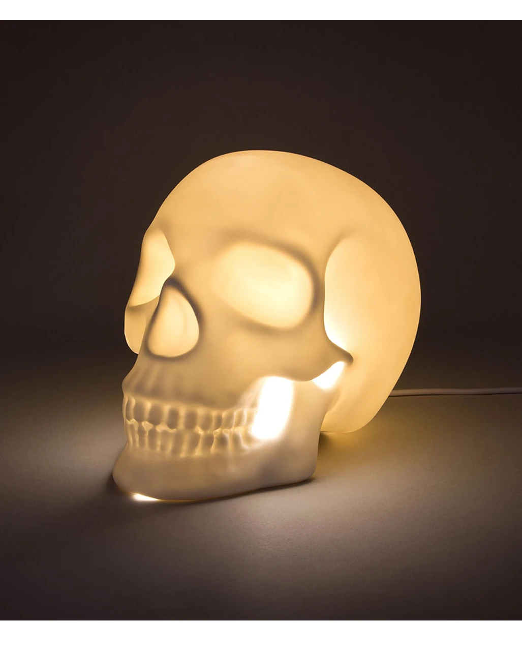 Holt euch die Totenkopf Lampe aus Porzellan, wenn ihr Fans von besondere Gothic Homeware oder Totenschädel Deko seid. Die Porzellan Lampe hat die exakte Form eines menschlichen Totenkopfs. Natürlich ist diese Deko nicht aus echten Knochen, sondern aus Porzellan und der entsprechenden Elektronik, die die Lampe in Totenkopf Form zum Strahlen bringt. Weitere Gothic Wohnaccessoires für Totenkopf Fans findet ihr hier im Shop!