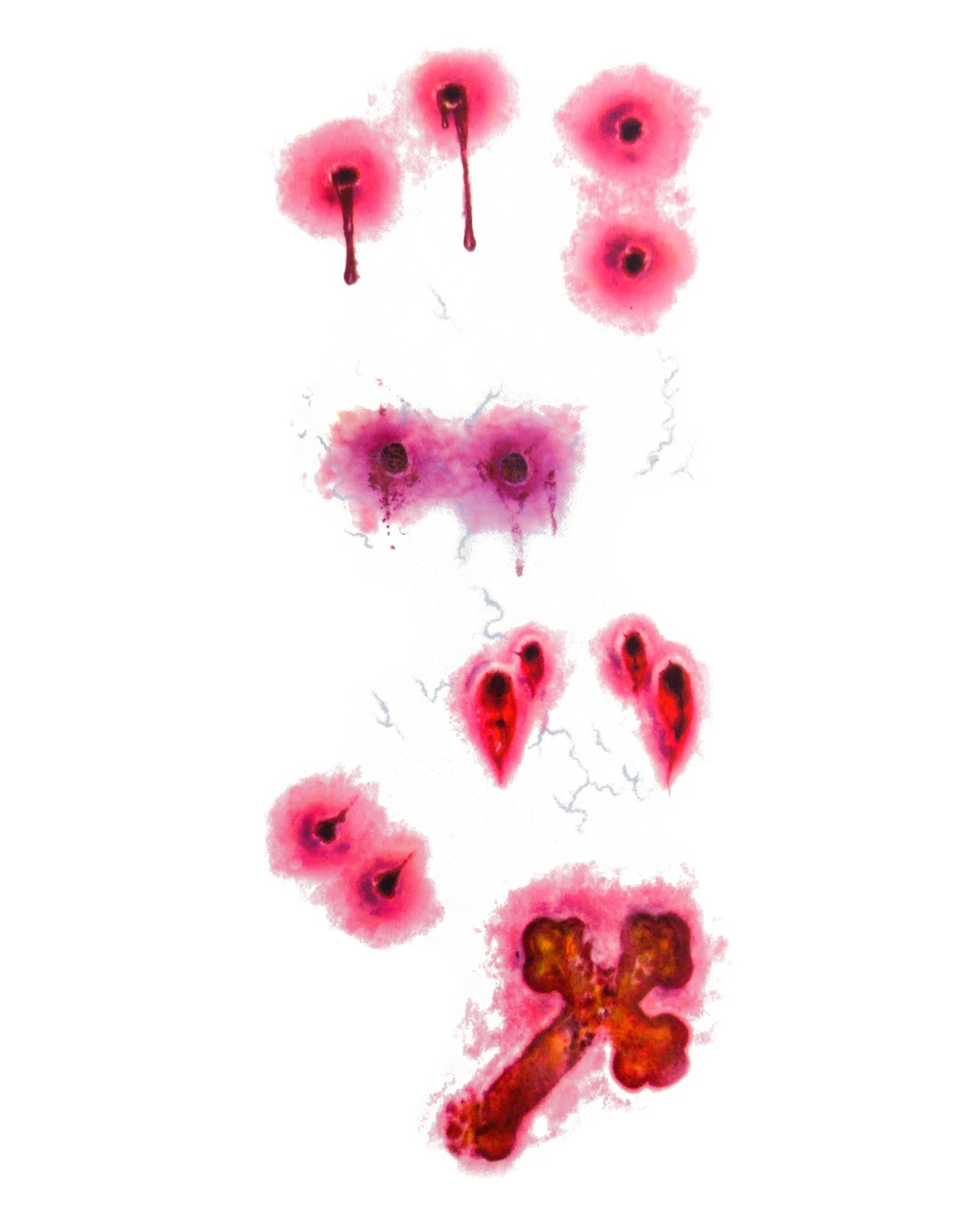 Die Vampirbiss Tattoo Wunden enthalten 7 verschiedene Wunden mit einer Längen von 4-9 cm. Du kannst sie an einer beliebigen Körperstelle anbringen und erhältst ein realistisches Ergebnis. Die Vampirbiss Tattoo Wunden sind einmalig verwendbar und lassen sich mit Baby- oder Olivenöl einfach von der Haut entfernen. Entdecke auch unsere scheußliche Missing Eyes Latexwunde und schocke dein Umfeld.