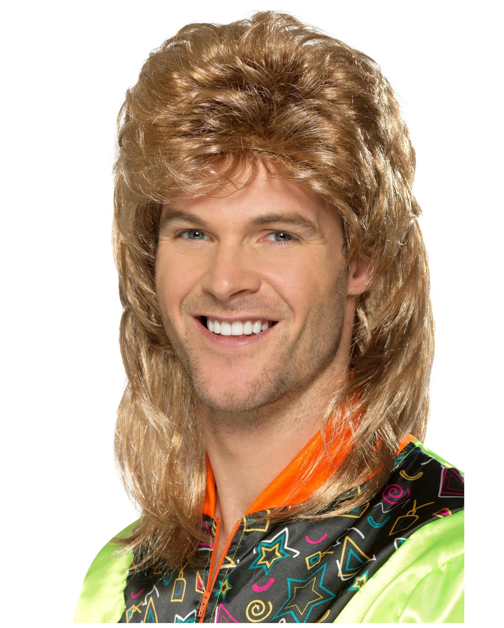 Hol dir die 80s Vokuhila Perücke in dunkelblond und werde zum prolligen Jogginghosen-Träger. Die schulterlange Herrenperücke erinnert an Filme wie „Manta Manta“ oder „Flodders“. Passend zur nächsten Bad Taste Mottoparty trägst du den Herren Vokuhila als Perücke zu deinem schrillen 80er Jahre Männer Kostüm.